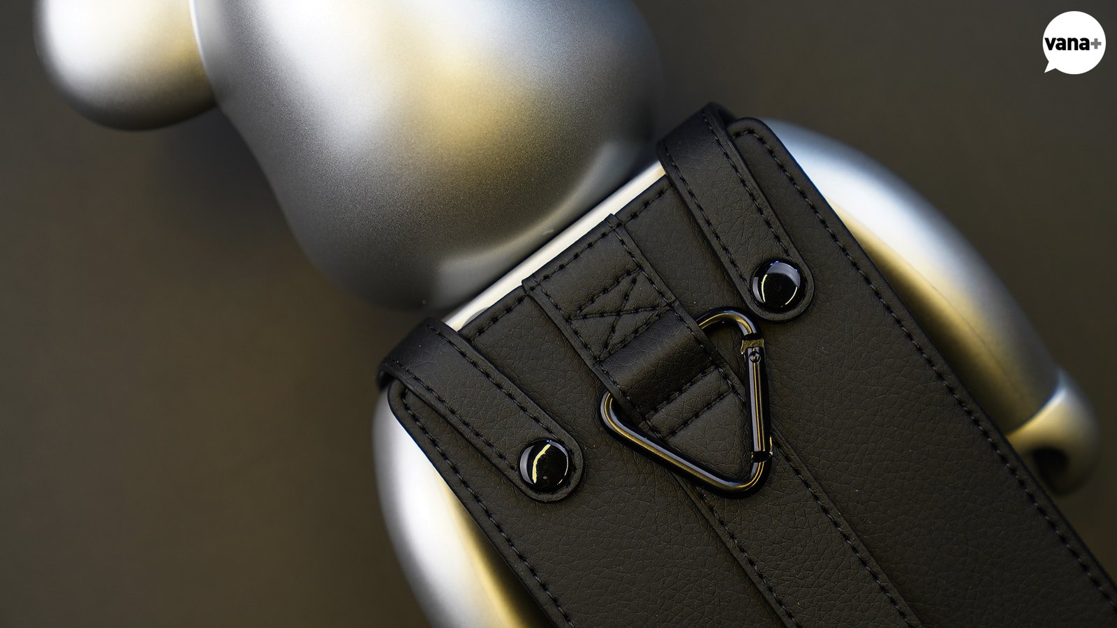 뒤쪽에는 스트랩을 끼울 수 있는 삼각형 고리가 달려있고 아래쪽으로는 메디컴토이의 로고가 음각으로 새겨져 있다.