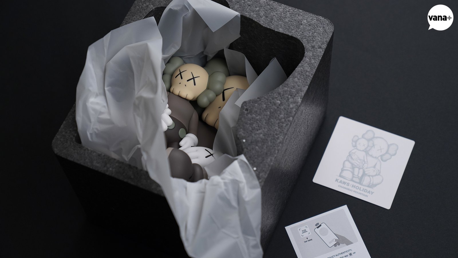 KAWS:HOLIDAY, Changbai Mountain의 한정판 컬렉션은 블랙과 브라운 버전의 컴패니언 피규어 두 종류 이외에