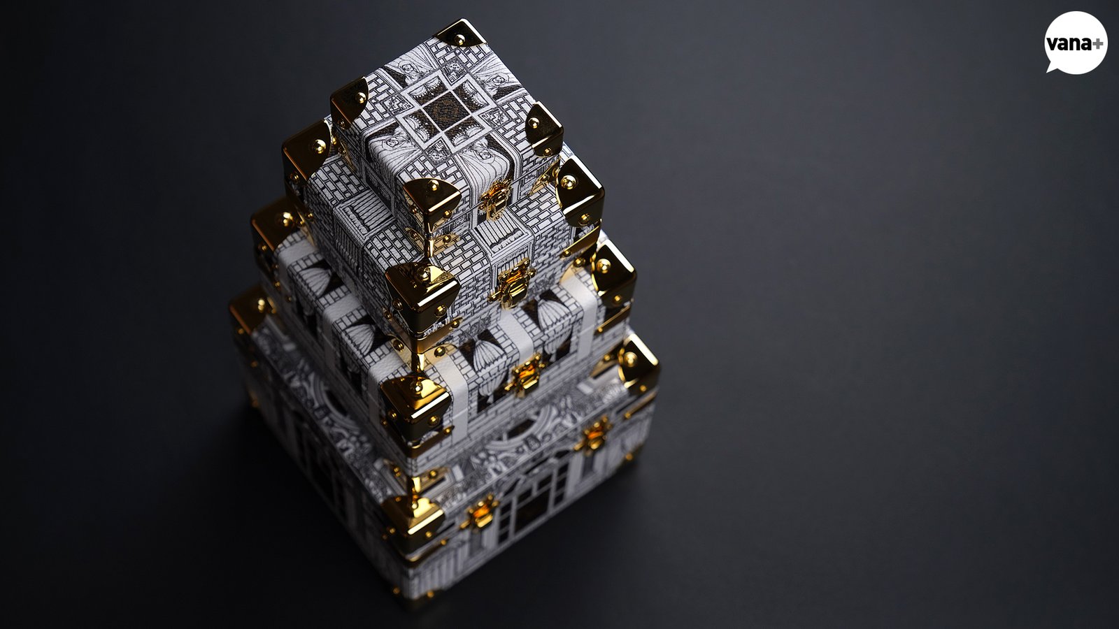 전체적인 형태가 피라미드 형태로 쌓이는 것 이외에도 개별 트렁크의 디자인이 고풍스러운 외관의 건축물을 연상케하는 디자인으로 되어있어 전체를 쌓아두게 되면 멋진 건물을 보는 것 같은 느낌도 들게 된다.