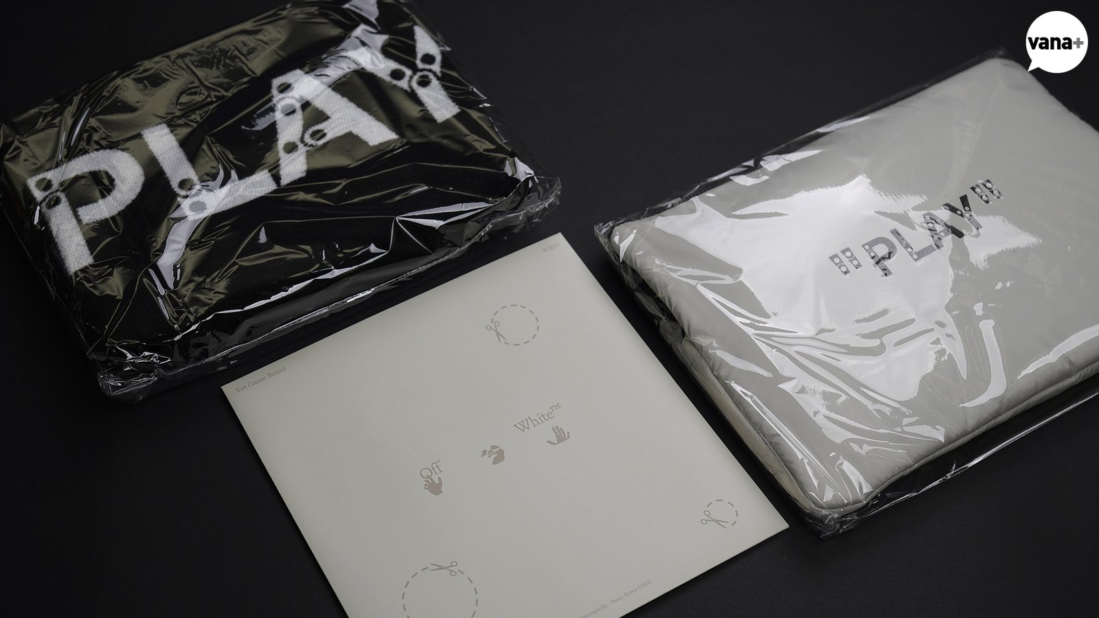 여튼 배송받은 플레이 킷은 오프화이트 특유의 구멍 숭숭 뚫린 형태의 패키지로 크기가 제법 크다.