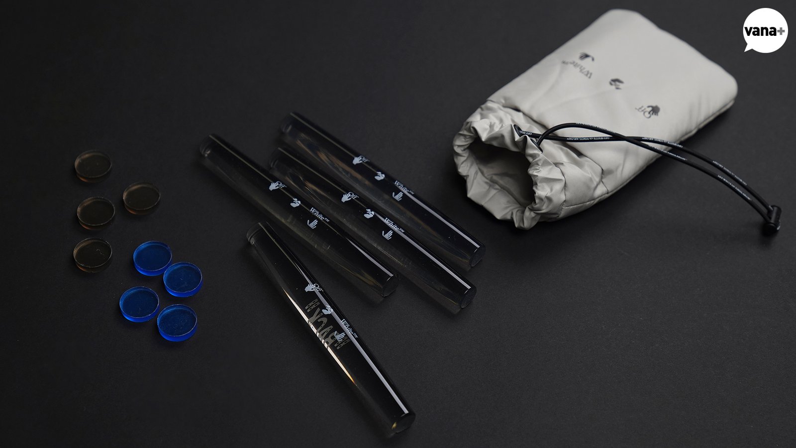 작은 파우치안에는 굉장히 시크한 투명 아크릴제 윷과 4개씩 두 쌍의 윷말이 들어있다.