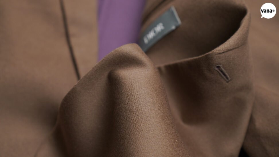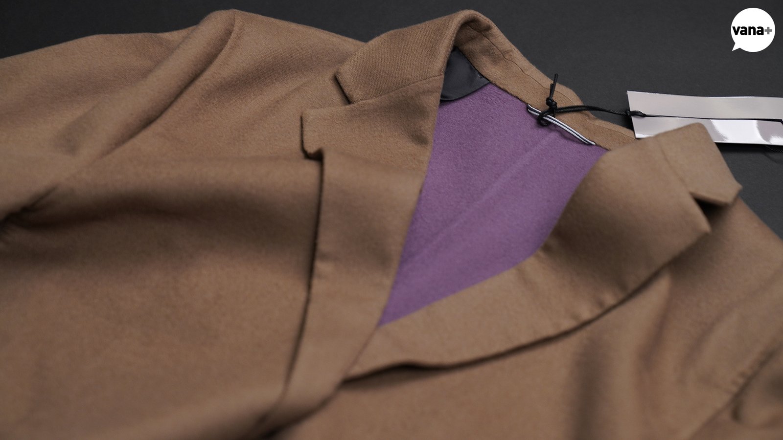 바깥쪽은 브라운 컬러지만 안쪽은 모브(mauve) 컬러로 된 버진 울 재킷이다.