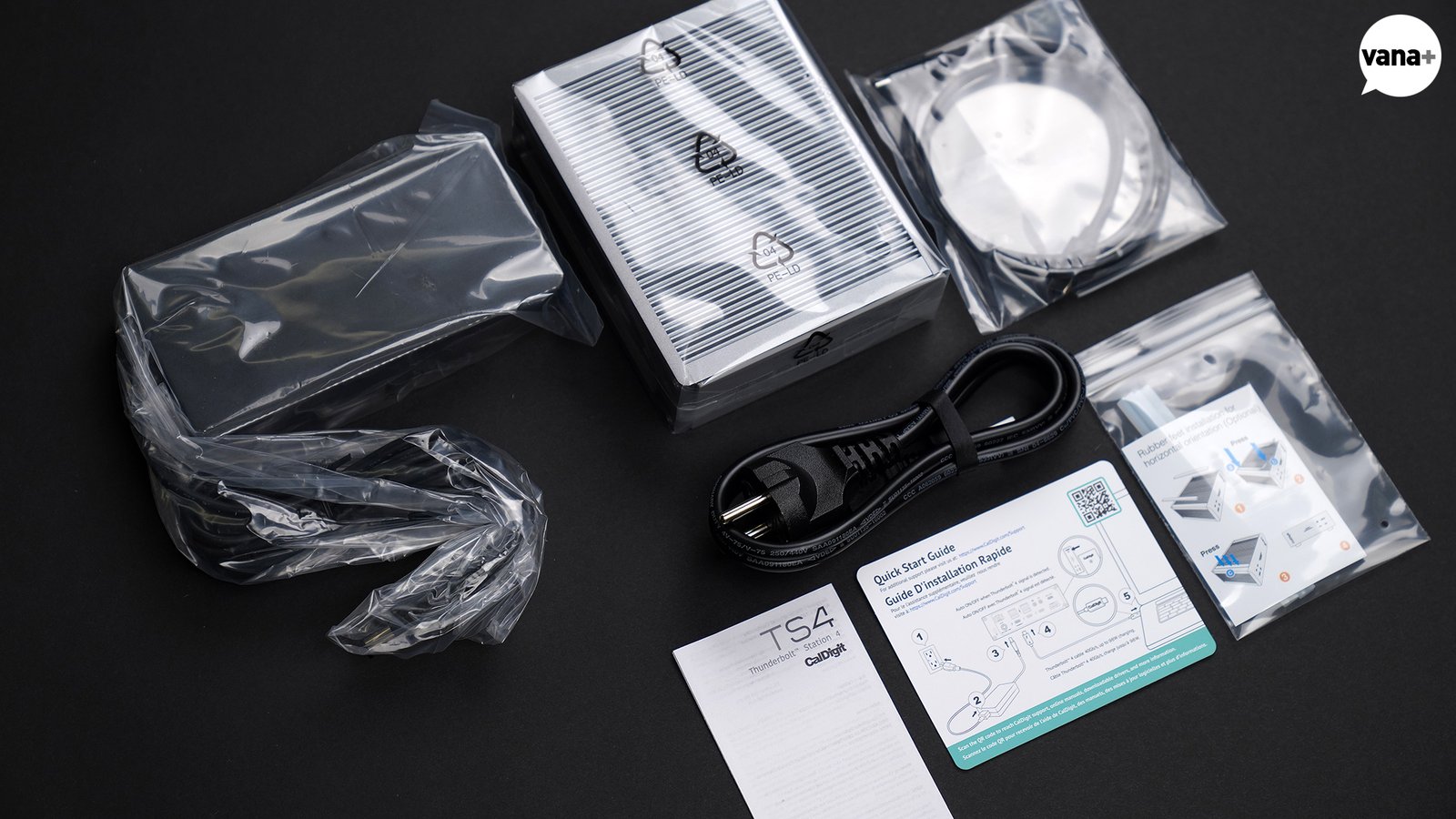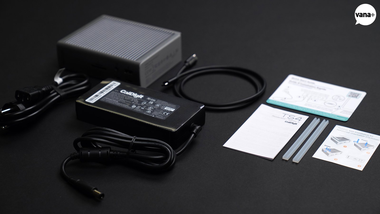 패키지 가장 위쪽의 본체를 들어내면 큼지막한 파워 어댑터와 함께 파워케이블, 0.8m 짜리 Thunderbolt 4 케이블 그리고 고무다리와 간단한 설명서가 동봉되어 있다.