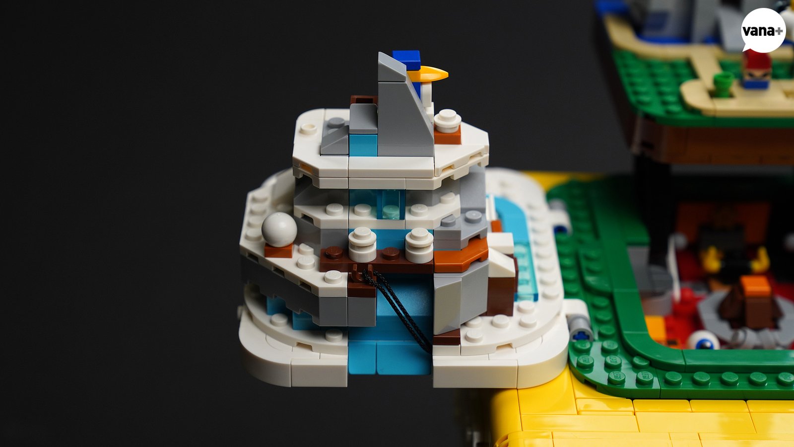 성 옆의 물과 다리 표현, 한 칸짜리 역 슬로프 부품을 활용한 성 특유의 대각선 표현.