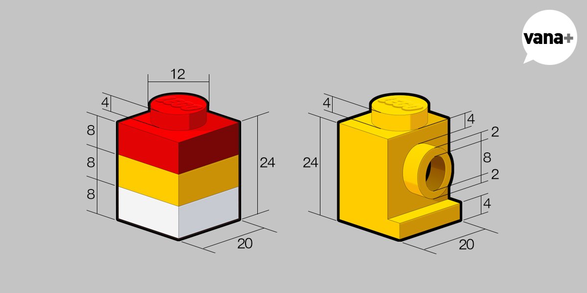 마찬가지로 24 LDU 높이의 일반 브릭 5개를 합치면 1×6 짜리 플레이트(혹은 일반 브릭)의 너비와 같다.