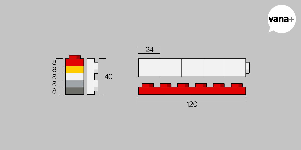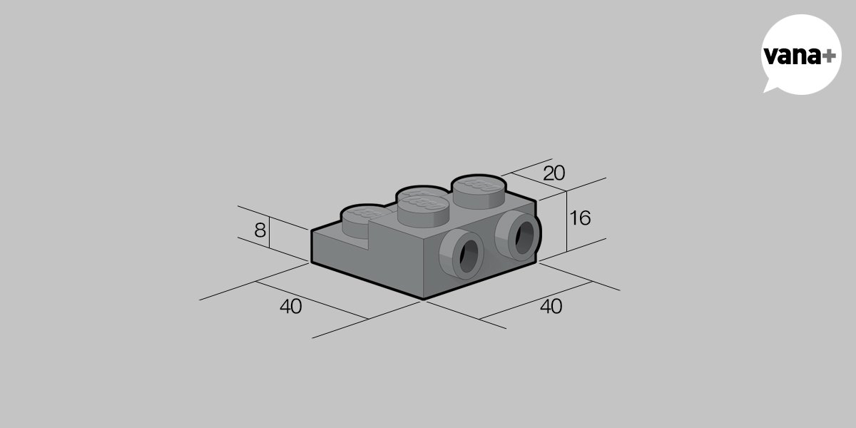 8 LDU의 플레이트 5개를 합치면 8 x 5 = 40 LDU 높이이므로 일반 브릭의 1×2 너비와 같다.
