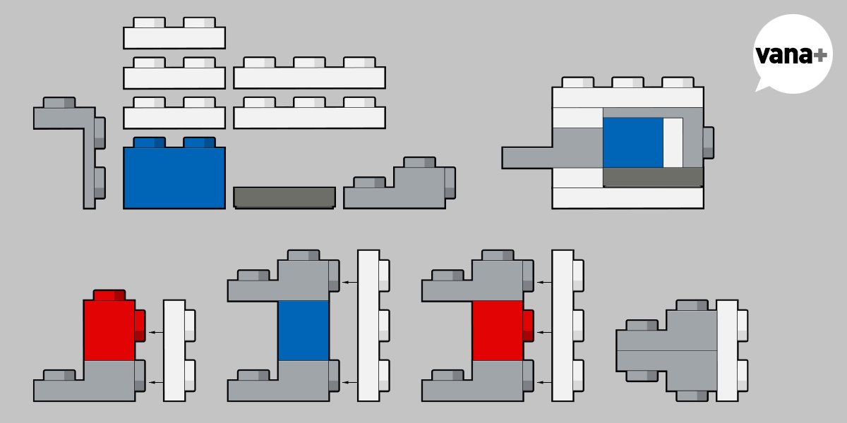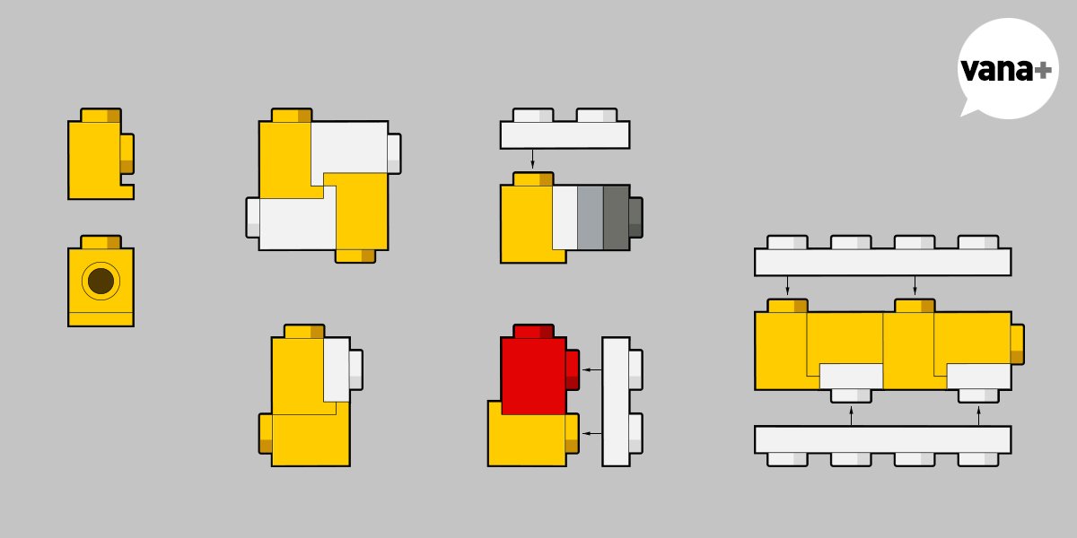 그 후 2018년 정도에 이미지 가장 마지막에 보이는 측면 스터드 하나 짜리 브래킷이 추가되며 작고 오밀조밀한 조립에 힘을 실어주게 된다. 예시 이미지에는 따로 올리지 않았지만 2021년에 추가로 세로 1×2 스터드 브래킷이 추가되며 지금에 와서는 거의 대부분 사이즈로 다 쪼개서 별도 부품화가 된 상태.