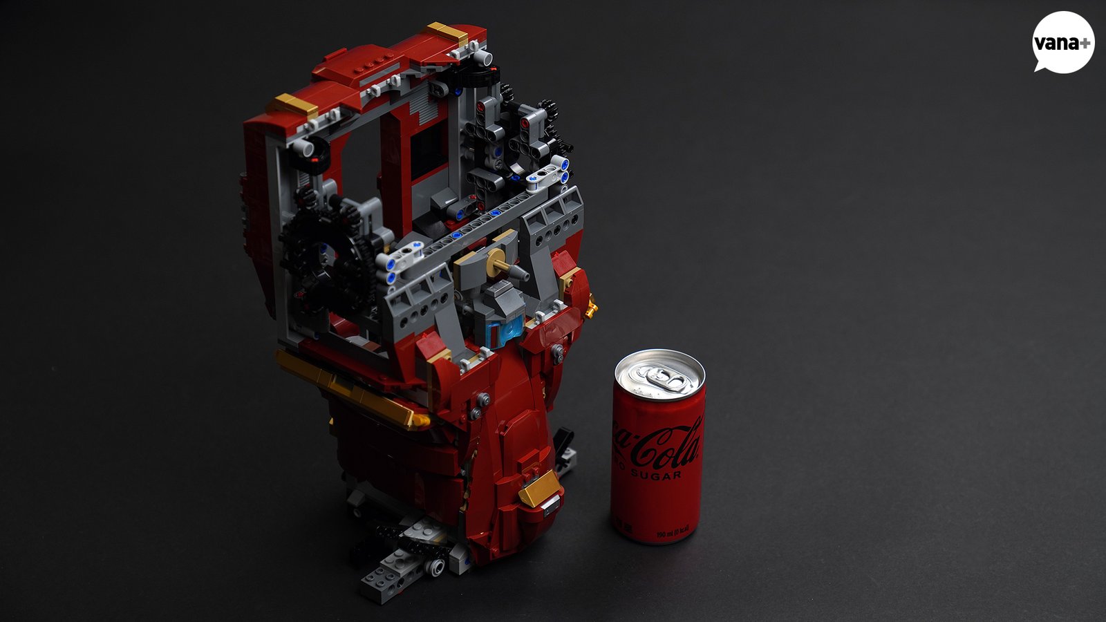 내부에 태울 아이언 맨 76206 제품이 이미 사이즈가 큰 상태라, 그 제품을 내부에 태우는 구조를 만드는 과정에서 불가피하게 상체의 크기가 길어지는 바람에 전체적인 비율이 망가져 버린 게 아닌가 싶다.
