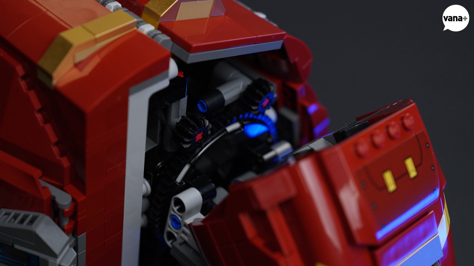 양 무릎과 정강이 등에도 설정상에는 아크 리액터가 박혀있지만 모두 라이트 브릭이 사용되지는 않았고, 가슴과 양 손바닥에만 라이트 브릭, 나머지는 야광 부품 등으로 표현되었다.