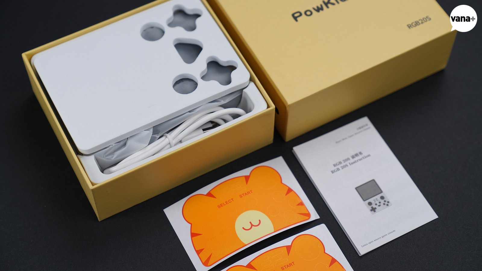 RGB20S 본체와 한 장짜리 설명서, 그리고 USB-A to C 케이블.