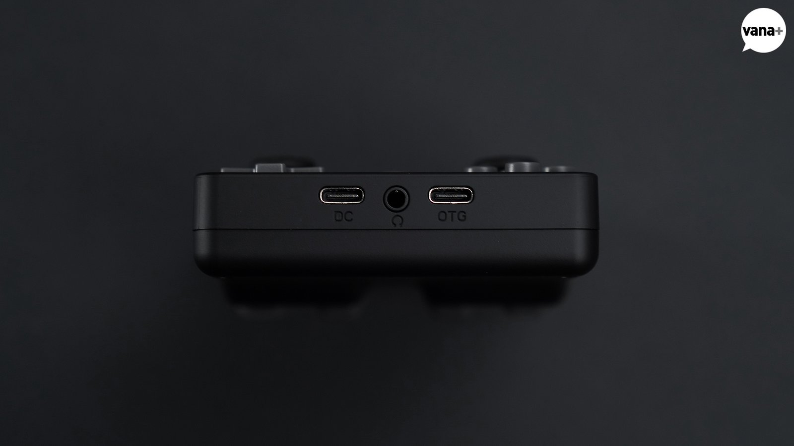 가운데 3.5mm 이어폰 단자를 중심으로 좌측은 USB Type-C 충전단자, 우측에는 OTG(On-The-GO) Type-C 단자가 위치하고 있다.