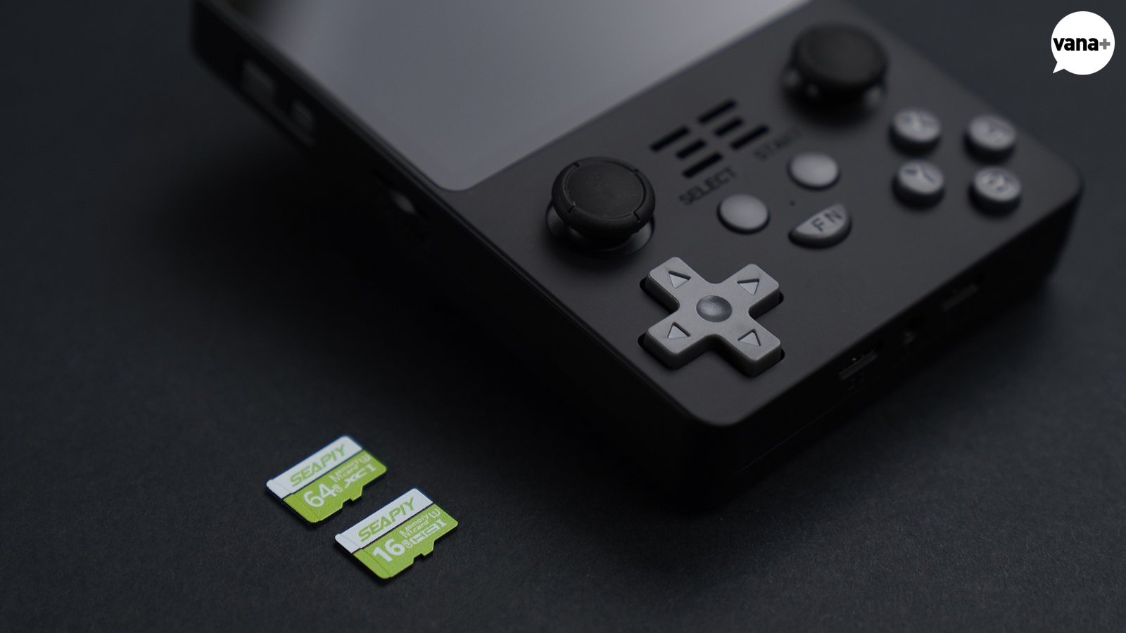 기기의 좌측에는 TF2-GAME, 우측에는 TF1-OS 라고 쓰여진 micro SD Card 슬롯이 자리하고 있는 모습.