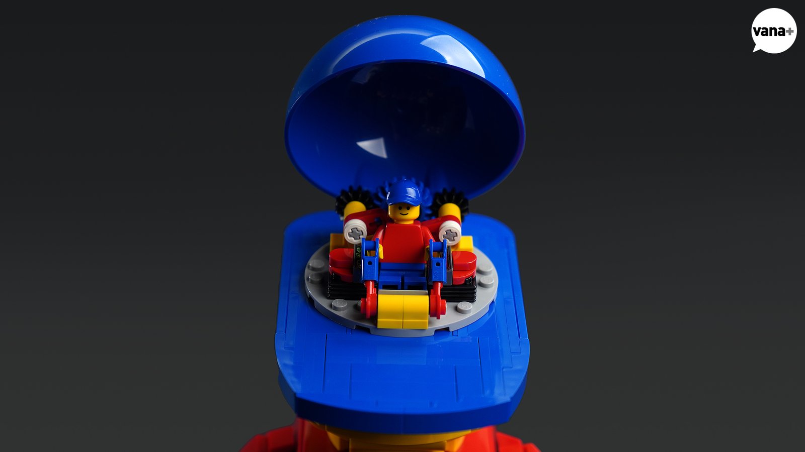 모자 윗부분 뚜껑을 열면 대형 피규어와 똑같은 코스튬의 미니피규어가 심플한 조종석에 앉아 대형 피규어를 조종하고 있는 모습을 연출해 두었다.