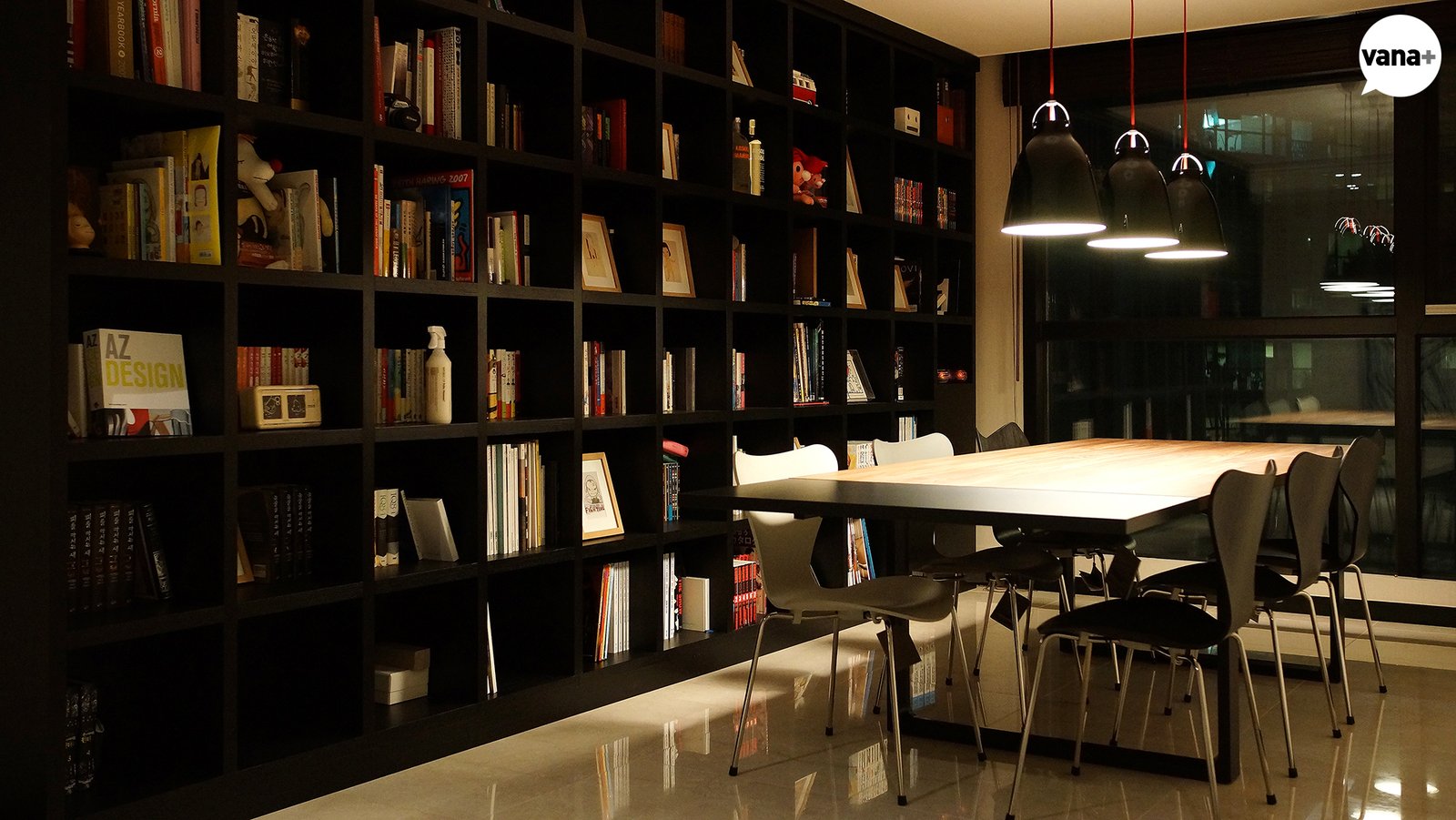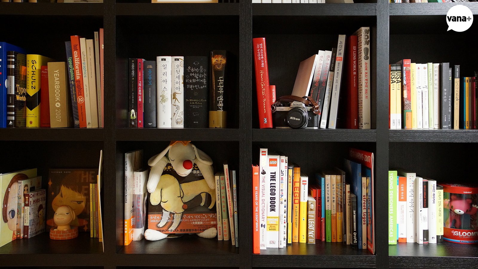 한 벽면을 가득 채운 책장의 구석구석을 나라의 아트북과 인형, 프린트 액자 등으로 꾸며놓은 것을 볼 수 있다.