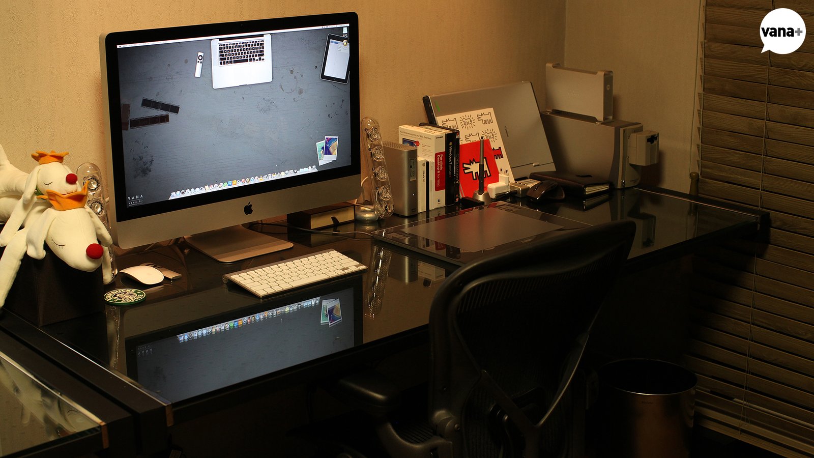두툼한 iMac도 생소하지만 구형 로고의 스타벅스 코스터, 그리고 당시엔 힙했던 Harman/Kardon의 사운드 스틱, 그리고 Nikon의 필름 스캐너인 Coolscan V ED도 눈에 들어온다.