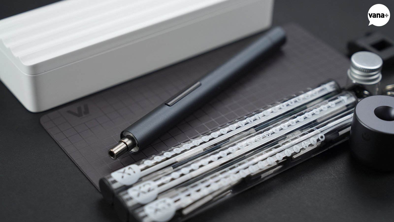 드라이버 비트들은 원기둥 형태의 투명 플라스틱 케이스 3개에 나눠 담겨 있는데, 넣고 빼기가 상당히 불편하다.