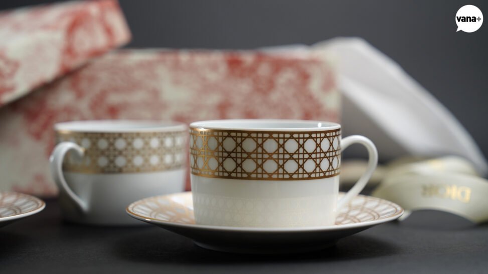 공식 홈페이지의 설명을 보면 “24K 골드 Cannage Montaigne 모티브로 장식한 엑스트라 파인 리모주 포셀린 소재의 찻잔입니다” 라고 하는데..