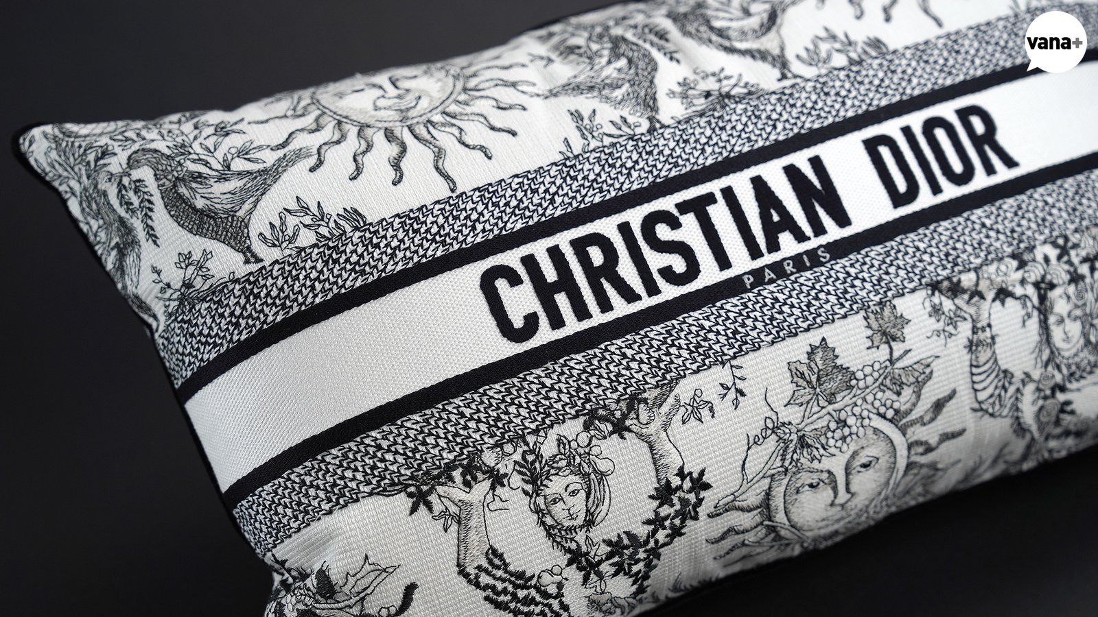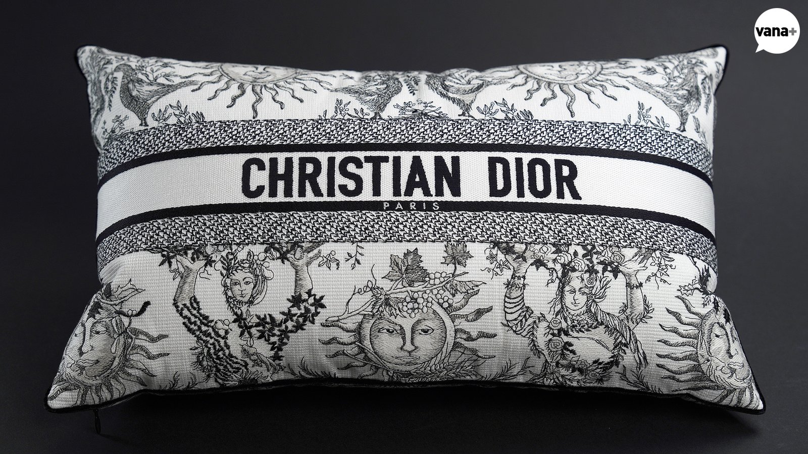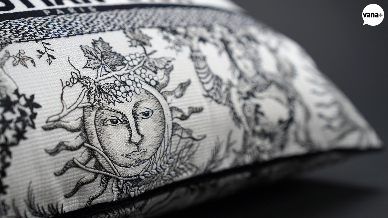 Toile de Jouy Soleil Sun 모티브 자수의 직사각형 쿠션을 사봤다.