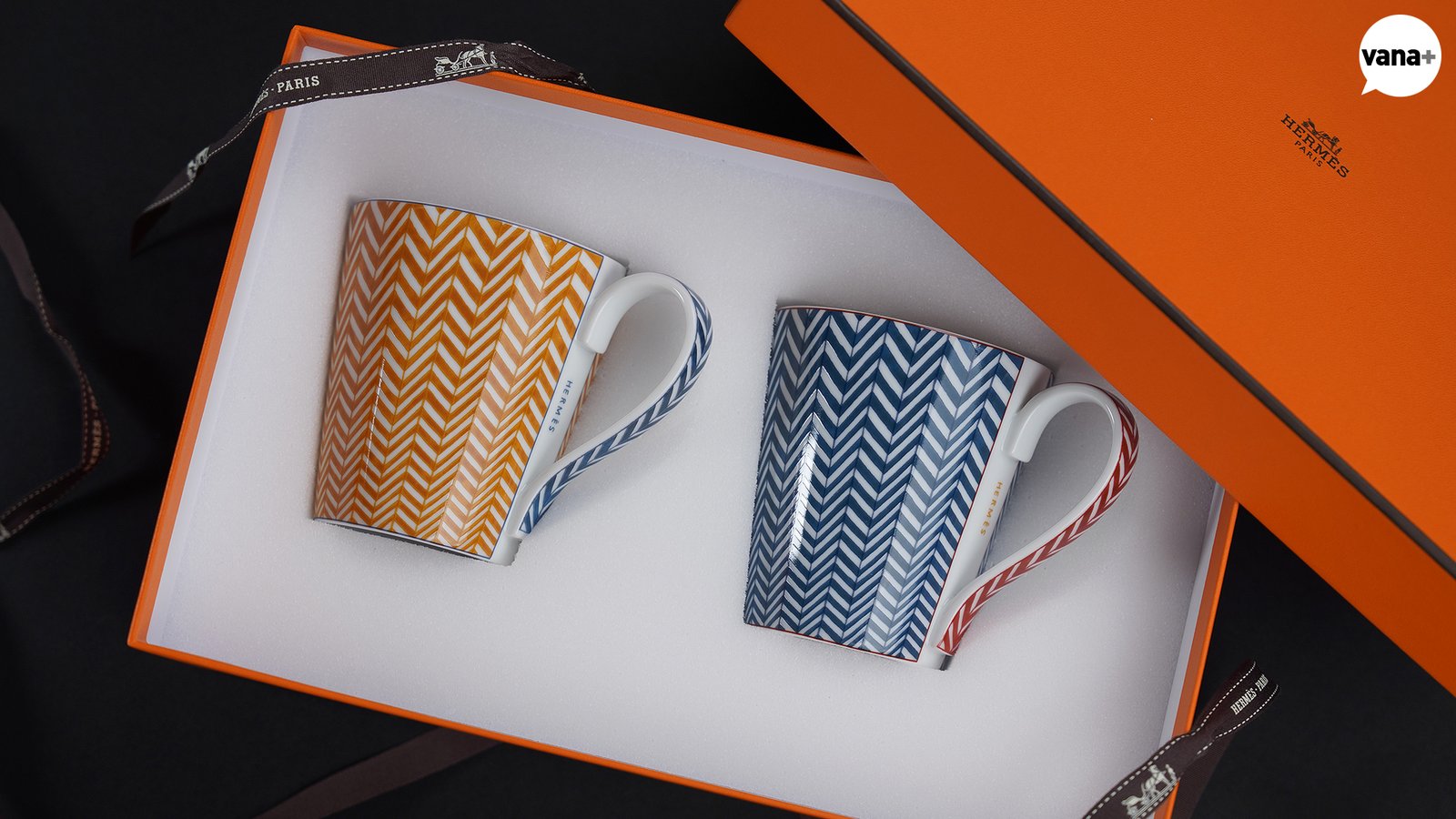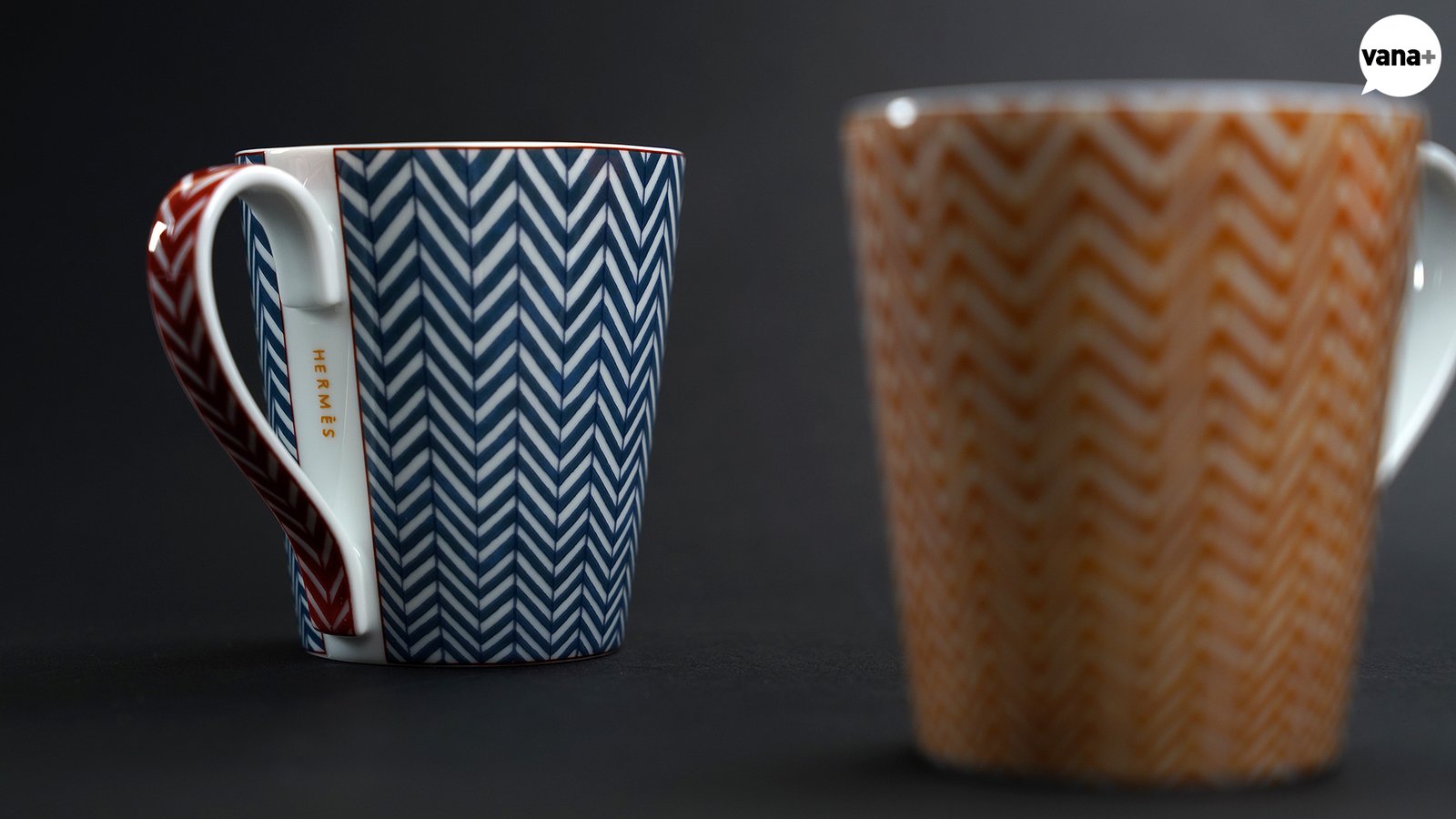 이름 그대로 헤링본 패턴이 그려진 두 개의 머그 세트.