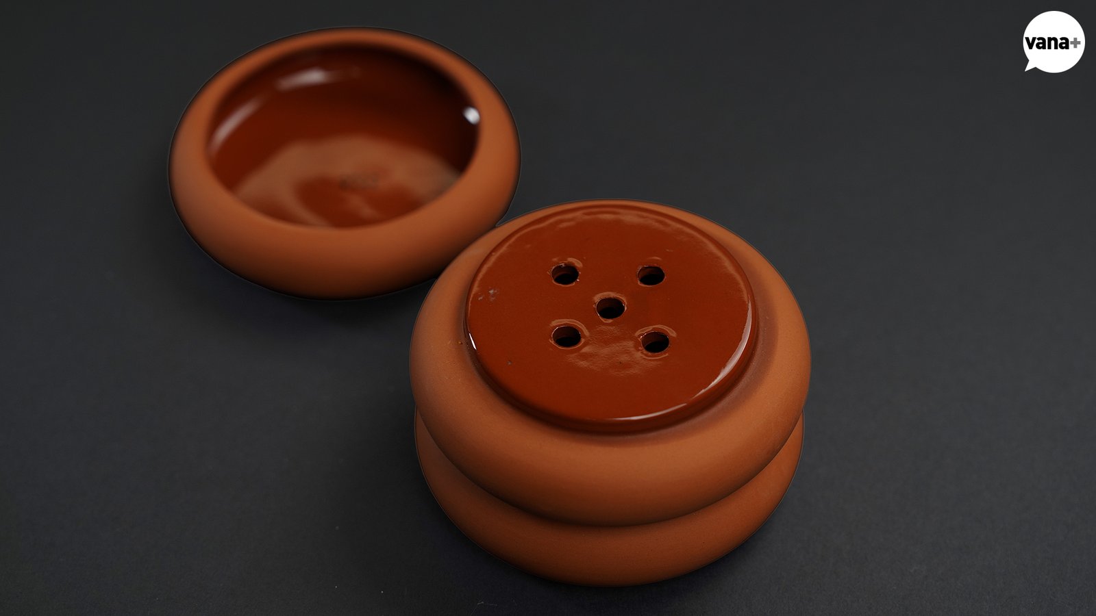 화분 받침을 포함한 전체 크기는 Ø10 x H7.6 cm로 화분의 하단에는 물 빠짐 구멍 5개가 뚫려있다.