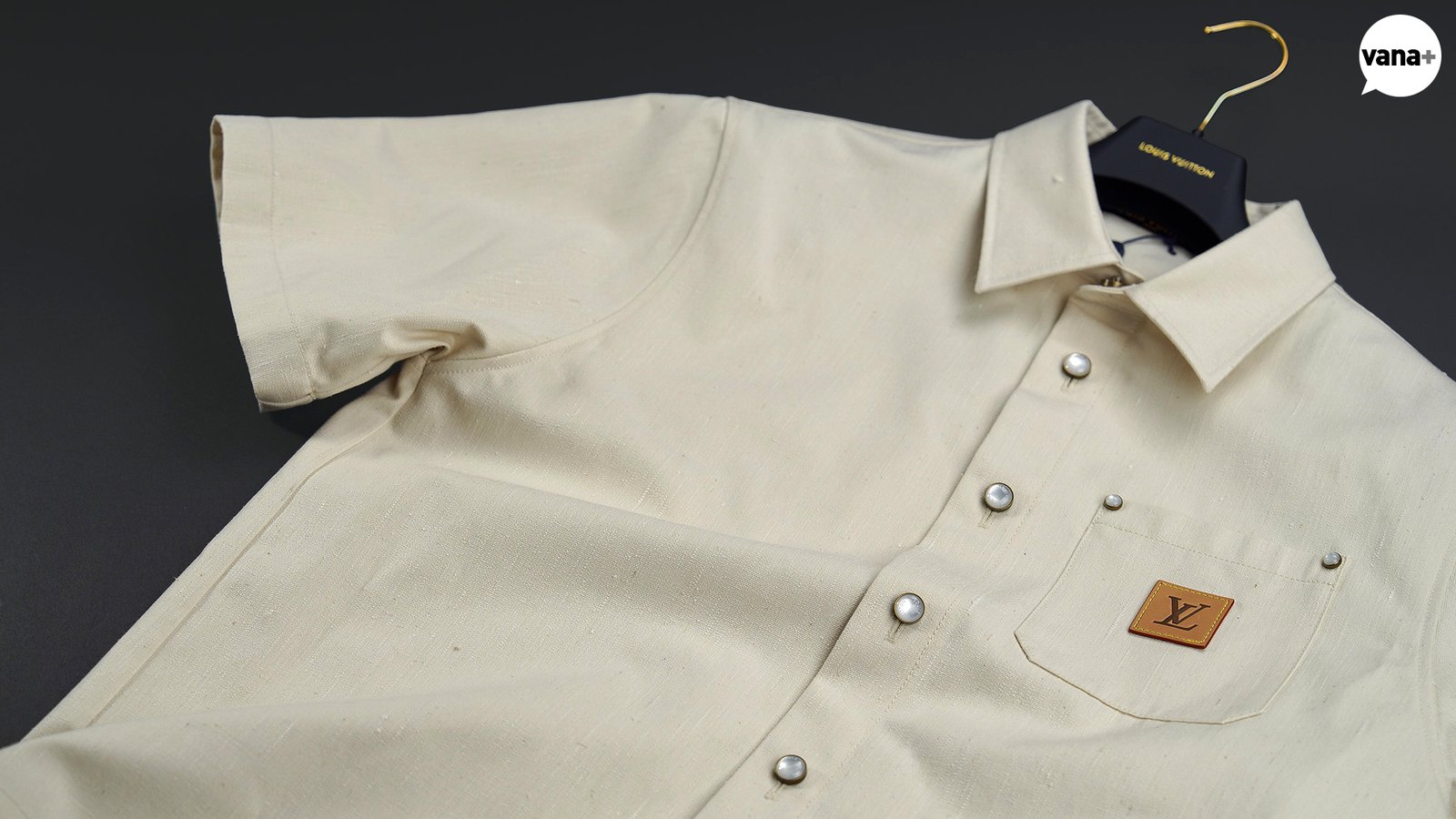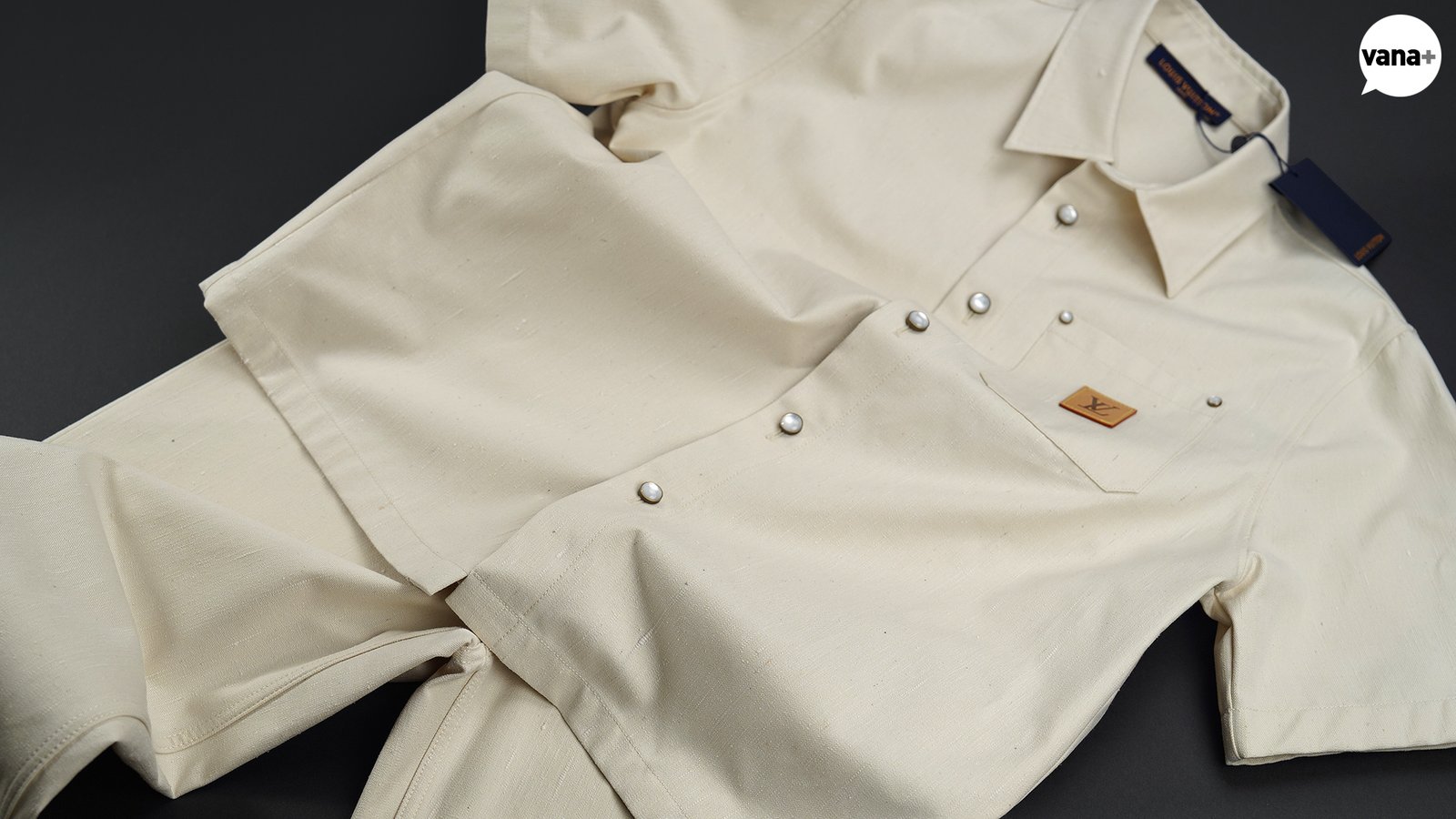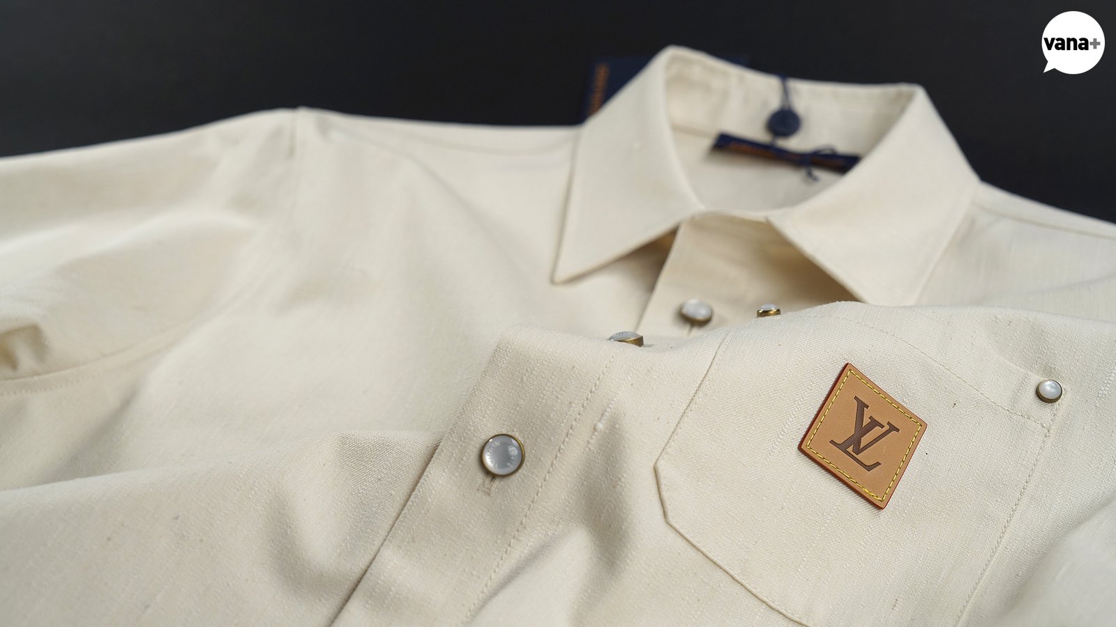 가슴 포켓에는 가죽으로 된 VVN 시그니처 패치가 달려있다.
