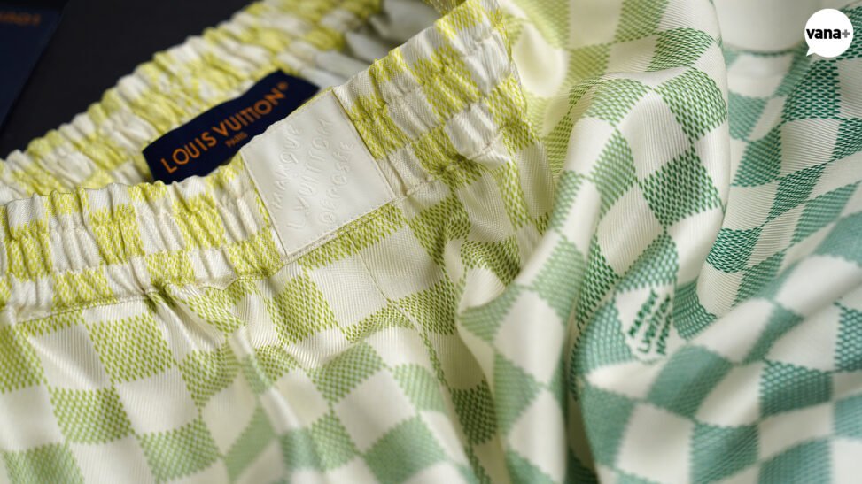사이드의 화이트 니트 스트라이프 밴드와 더불어 앞쪽에 ‘Marque L.Vuitton déposée’ 시그니처 라벨이 달려있어 복서가 입는 운동복 느낌이 살짝 난다.