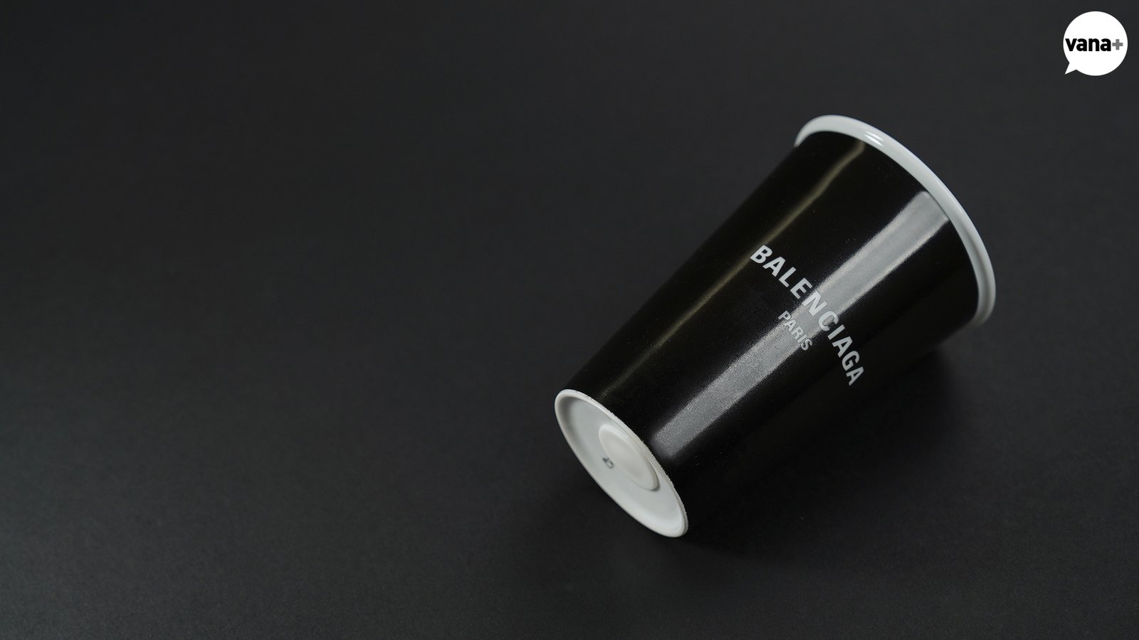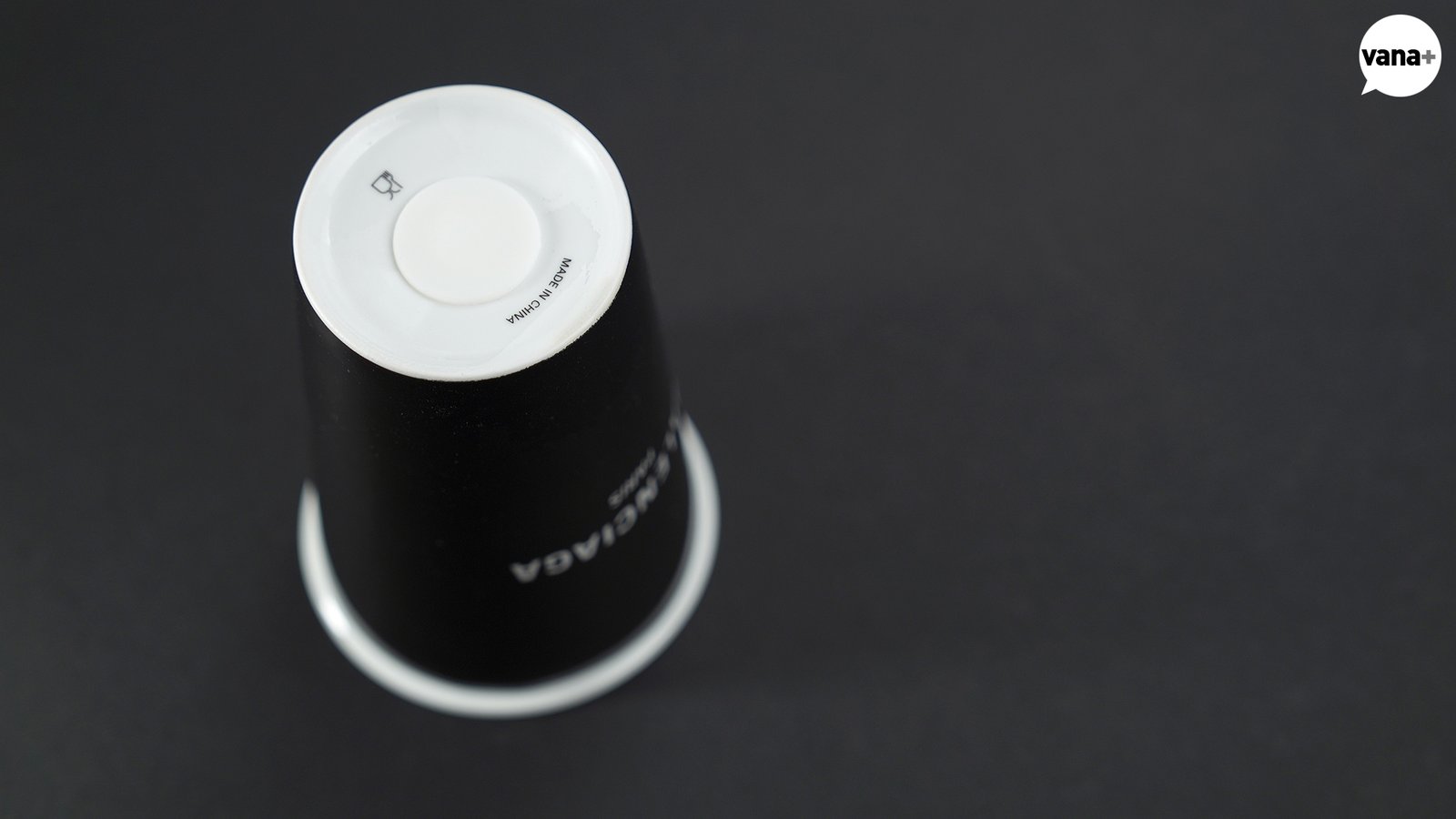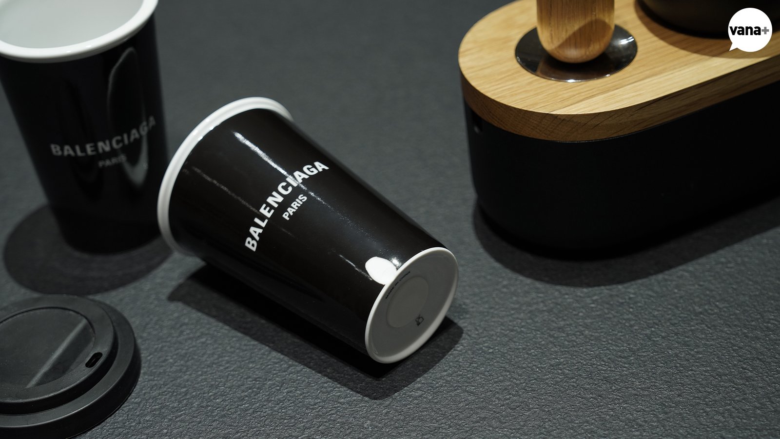 컵 재질은 포슬린(porcelain), 뚜껑은 열가소성 엘라스토머(Thermoplastic Elastomer, TPE)와 폴리프로필렌(Polypropylene)이며 디자인은 일반적인 카페의 커피 컵 모양.