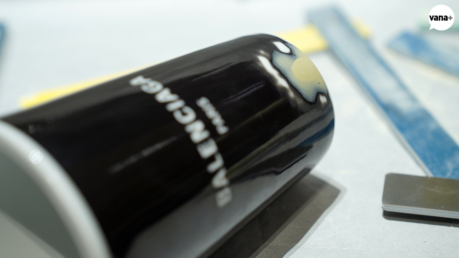 입이 닿는 부분을 마스킹한 후에 투명 마감 코팅제를 뿌려 마무리.