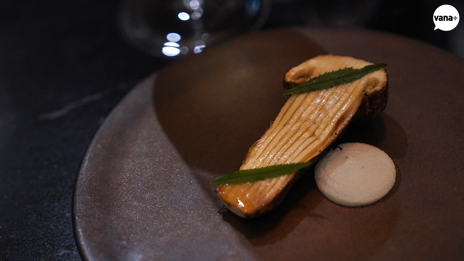 구운 송이버섯, 해바라기씨 퓨레, 허브
