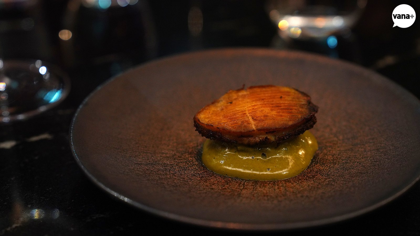 두툼하고 크리스피한 감자 뇨끼 위에 잘 구워진 전복, 그리고 그 두 가지를 잘 묶어주는 게우소스의 조합.
