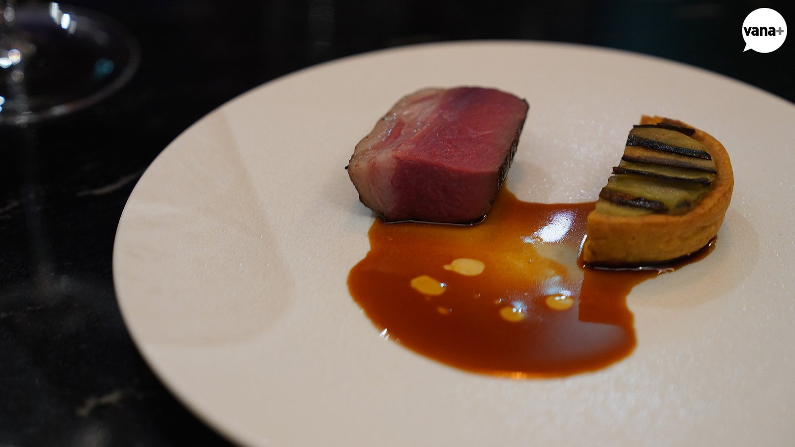 기름과 살코기가 고소하게 적절히 섞인 양갈비와 가지 타르트를 함께 서브.