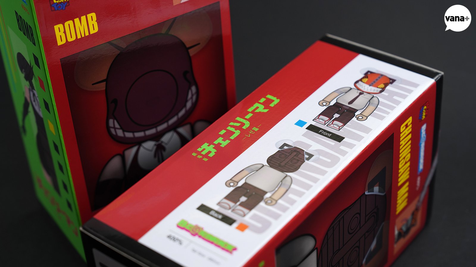 패키지 박스의 앞면과 뒷면에는 베어브릭 형태의 캐릭터들의 앞/뒷면을 각각 그려 넣었다.