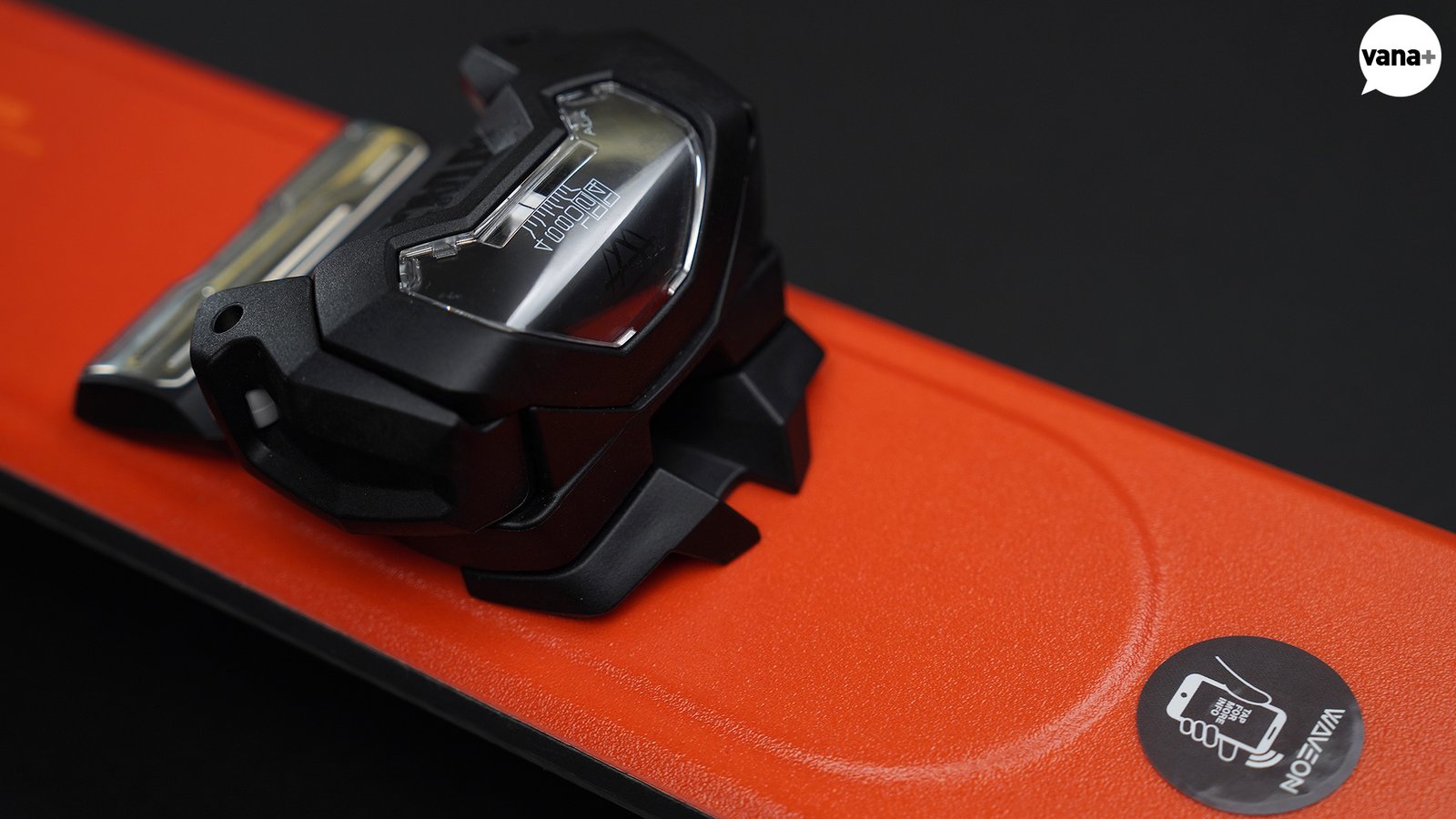 탈착이 가능한 에르고 클릭인 스트랩, 고무 그립 존이 특징이며 별도의 파우더 바스켓이 들어있어 파우더 스노우에서는 장착을 하고 사용하면 된다.