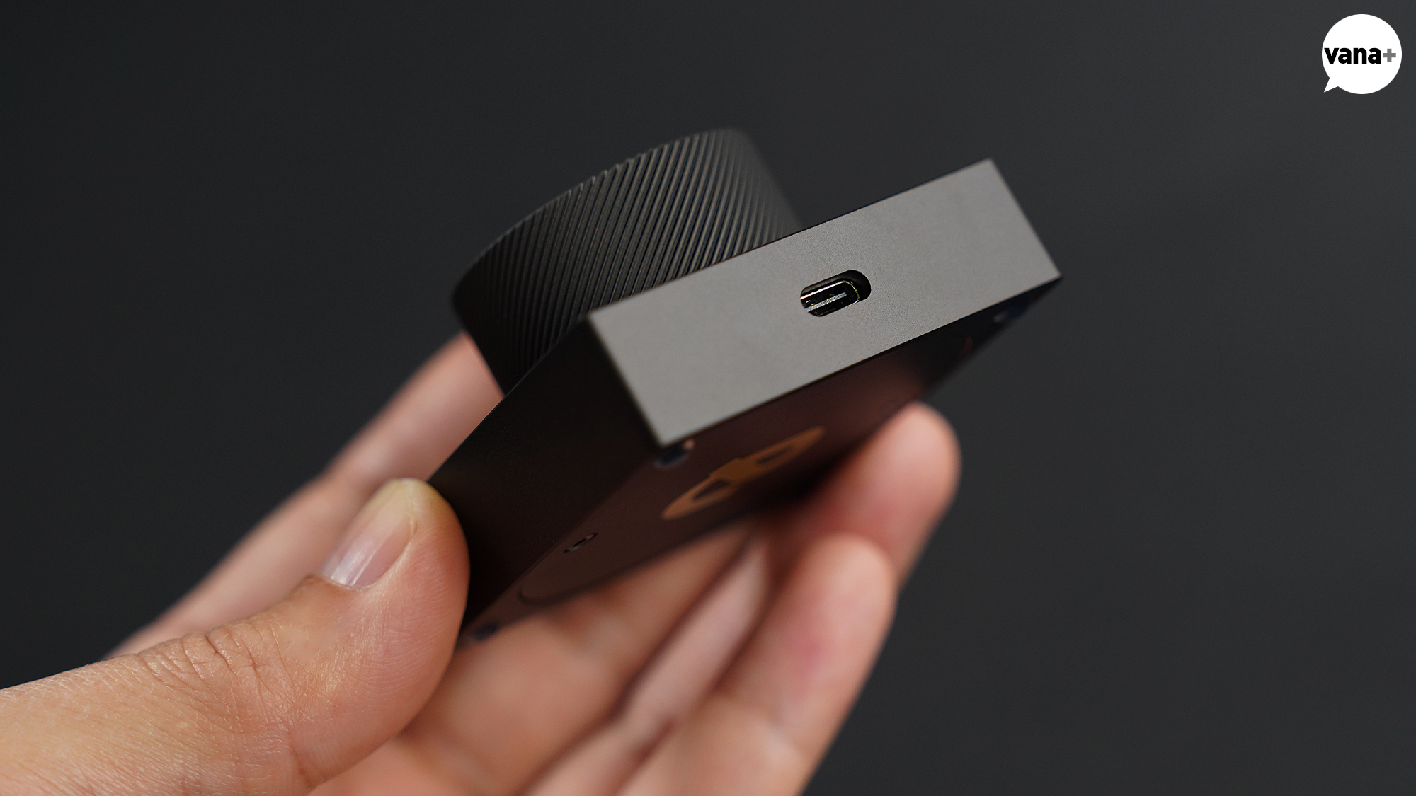 뒤쪽에 설정을 위한 연결 및 충전을 위한 USB-C 단자가 위치하고 있는 모습.
