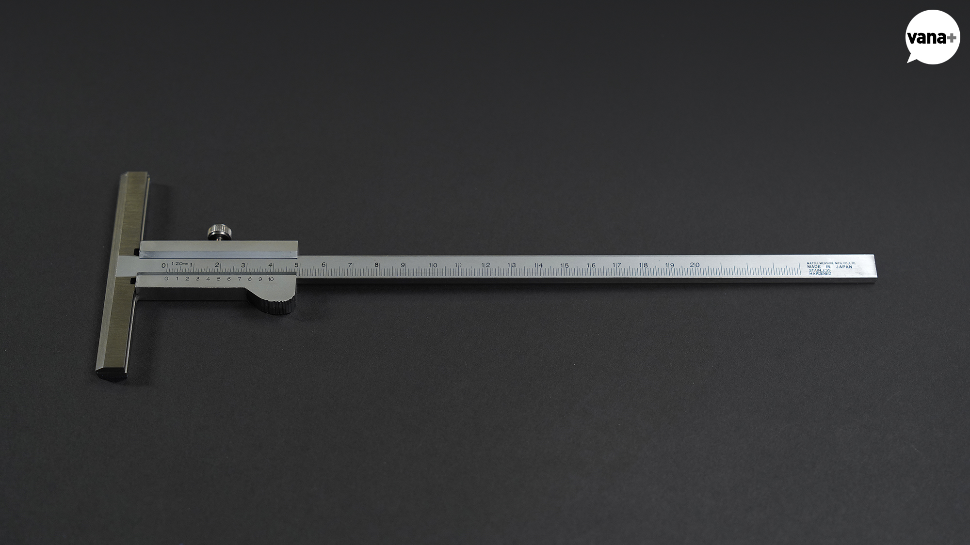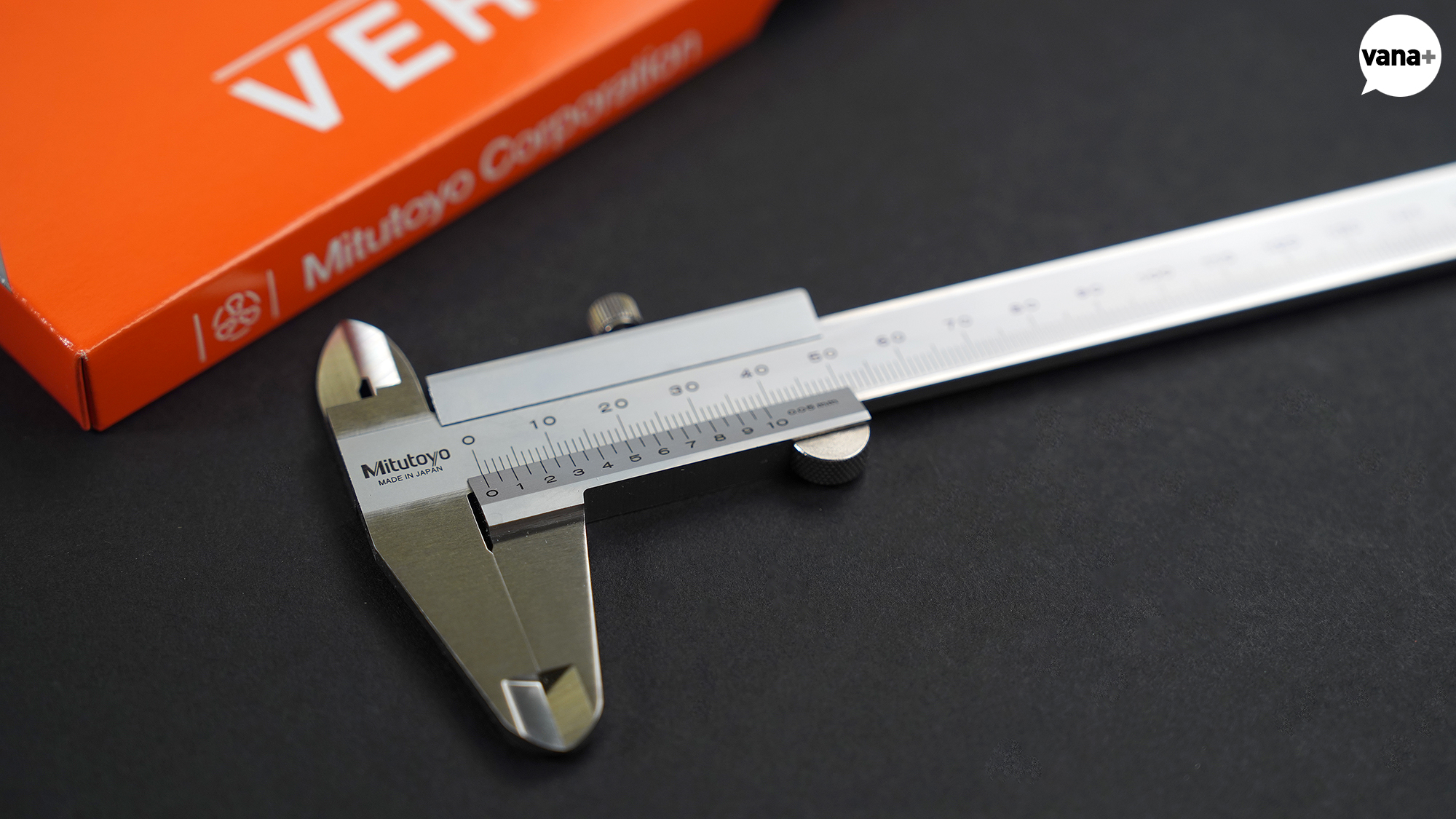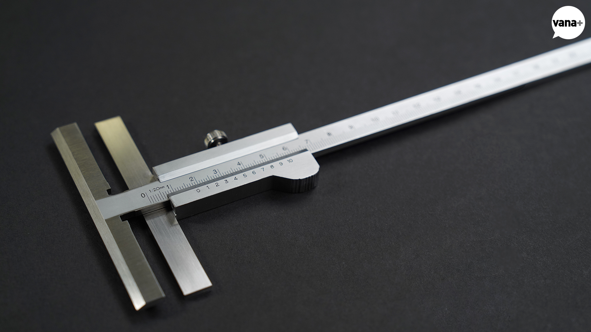 도구 하나로 외경, 내경, 깊이, 단차, 네 가지 측정을 할 수 있으며 기본 눈금인 어미자와 움직이는 부분에 달린 아들자(버니어)를 동시에 읽어 아주 정밀한 수치까지 측정할 수 있는 정밀 측정 도구.