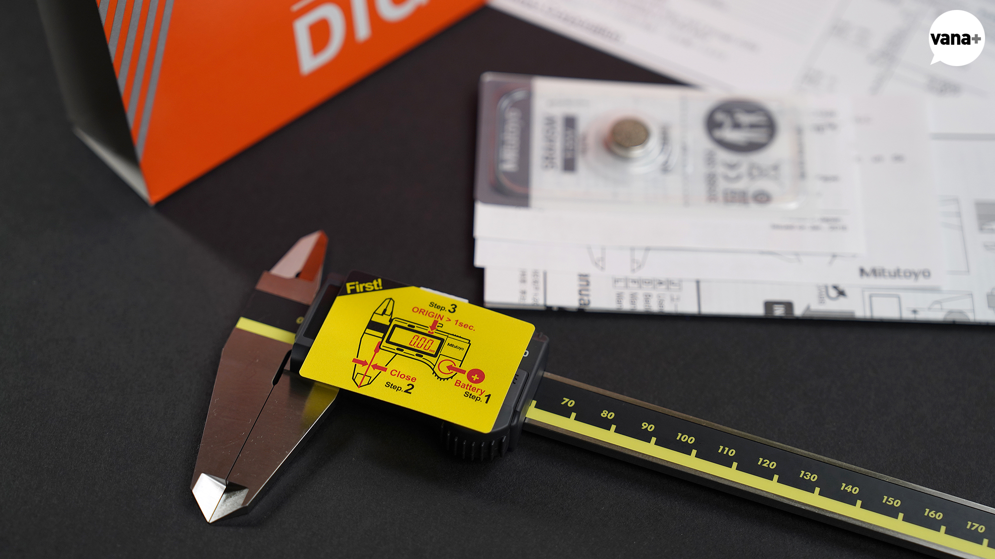 먼저 배터리 넣고, 버니어를 완전히 닫은 후, 위쪽의 ORIGIN 버튼을 1초 누르고 있으면 된다고 한다.