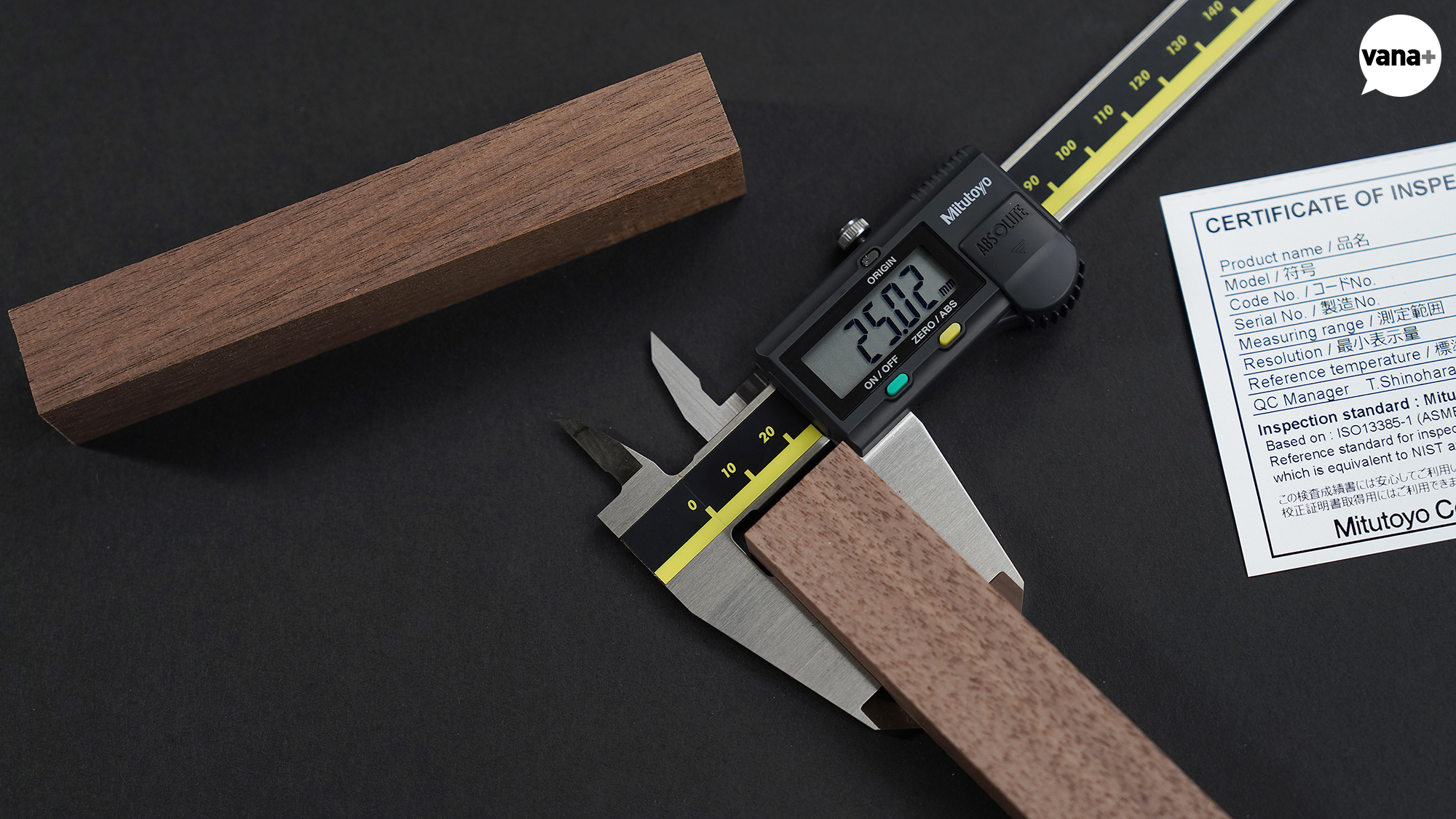 가구 만들고 남은 월넛 조각을 측정해 보니 25.02mm.