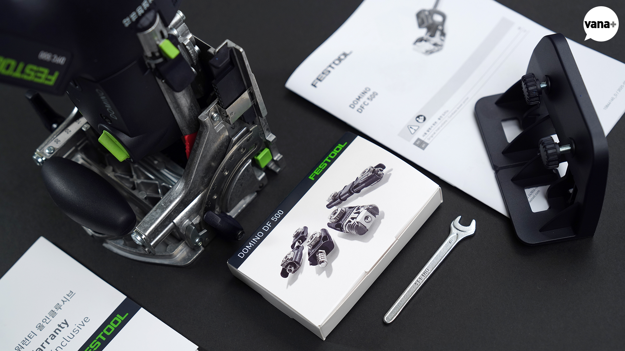 도미노 커터와 보조 스토퍼 펜스, 그리고 오픈 엔드 스패너가 함께 들어있는 모델이다.
