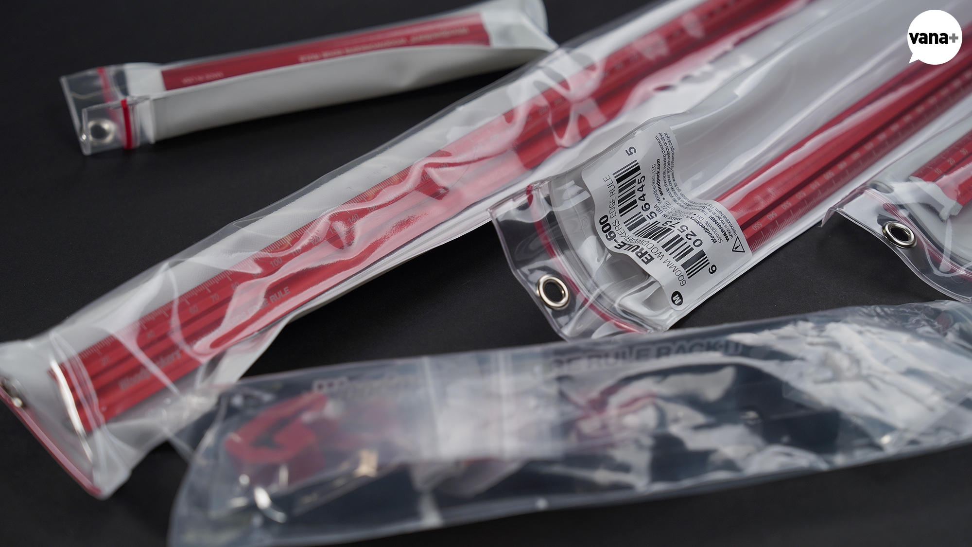 900mm, 600mm, 300mm, 150mm 모서리 자와 4개의 Edge Rule Stop, 그리고 전용 Rack-It이 포함된 세트 상품으로 구입했다.