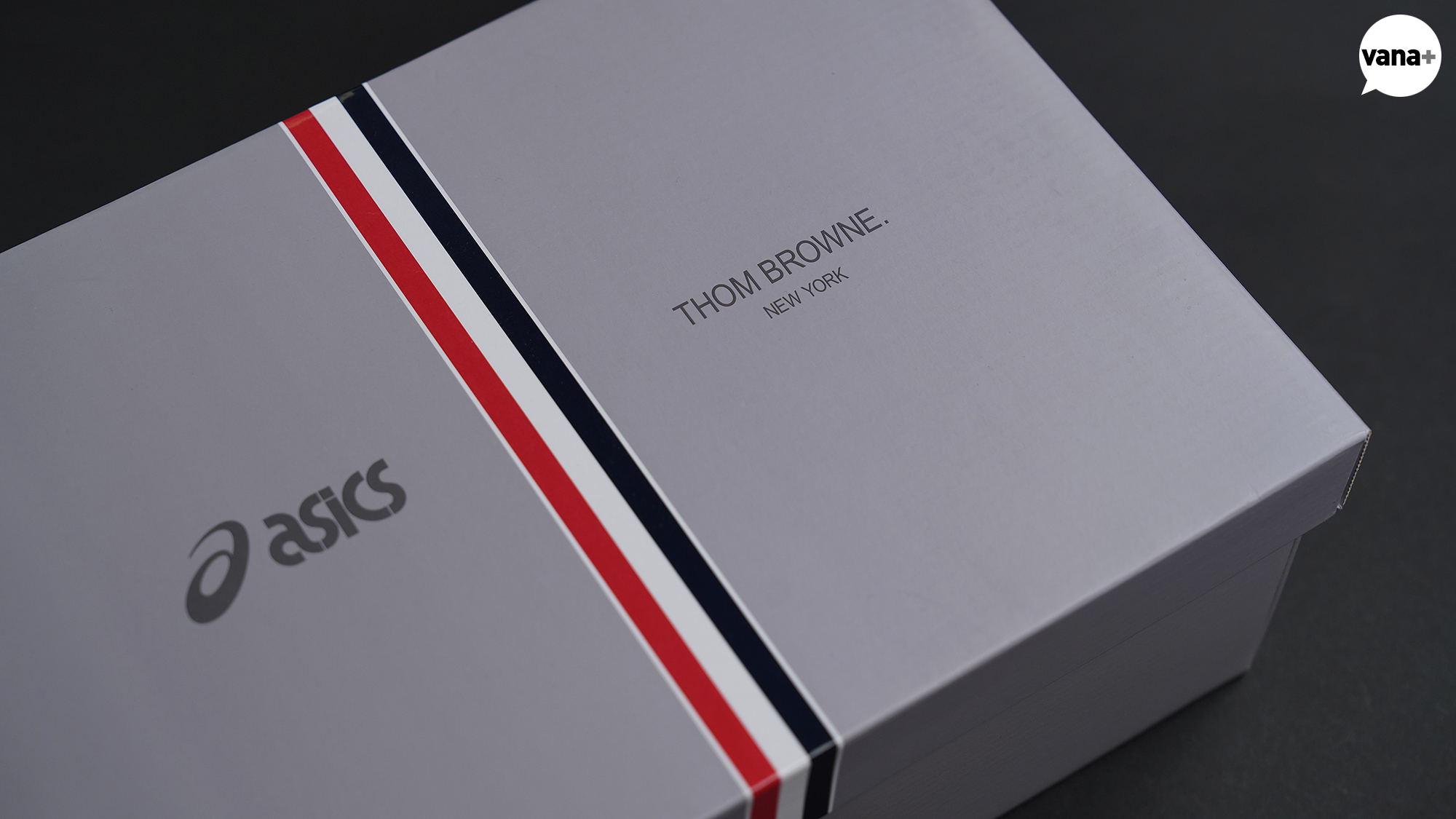 톰 브라운의 슈즈 케이스에 아식스 로고가 추가된 형태를 기대했는데, 결과물은 아식스 상자에 톰 브라운 로고가 들어간 모양새.