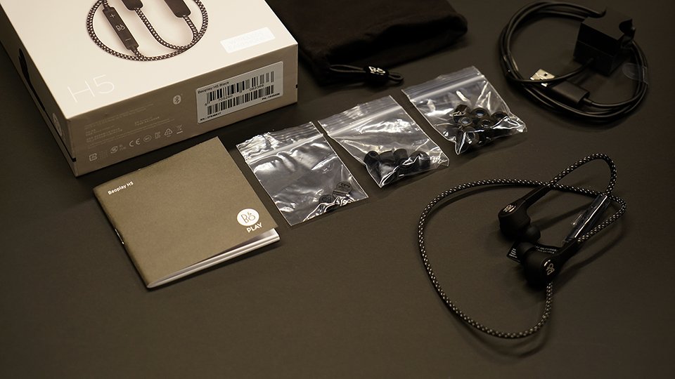 내용물은 이어폰, 설명서, 충전기, 파우치 그리고 케이블 클립과 실리콘 이어 팁, Comply™ Sport 이어 팁.