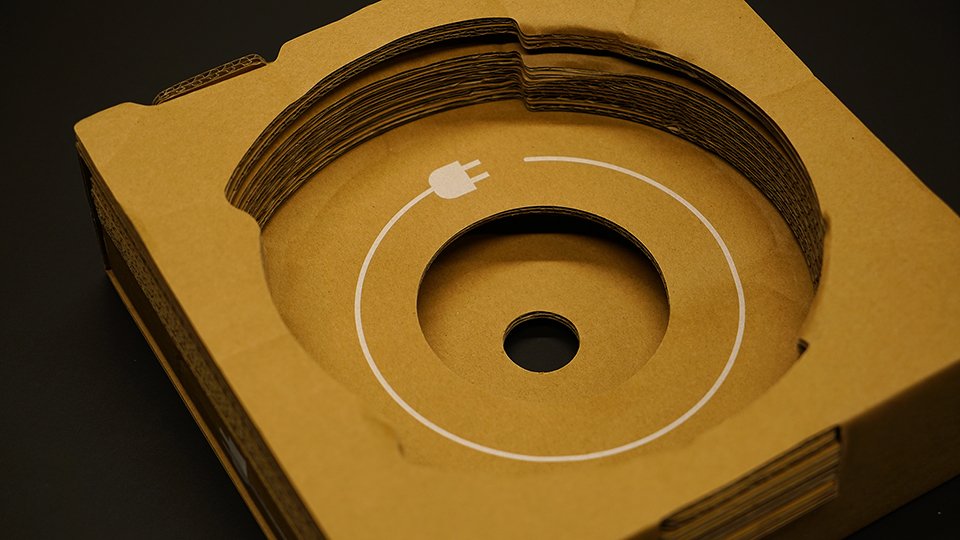 겹겹이 쌓인 골판지밑으로 전원 케이블이 감겨 있을 거 같은
