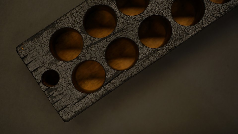 숯 형태로 만들면서 일부 수축이 되었는지 1-2개의 구멍이
