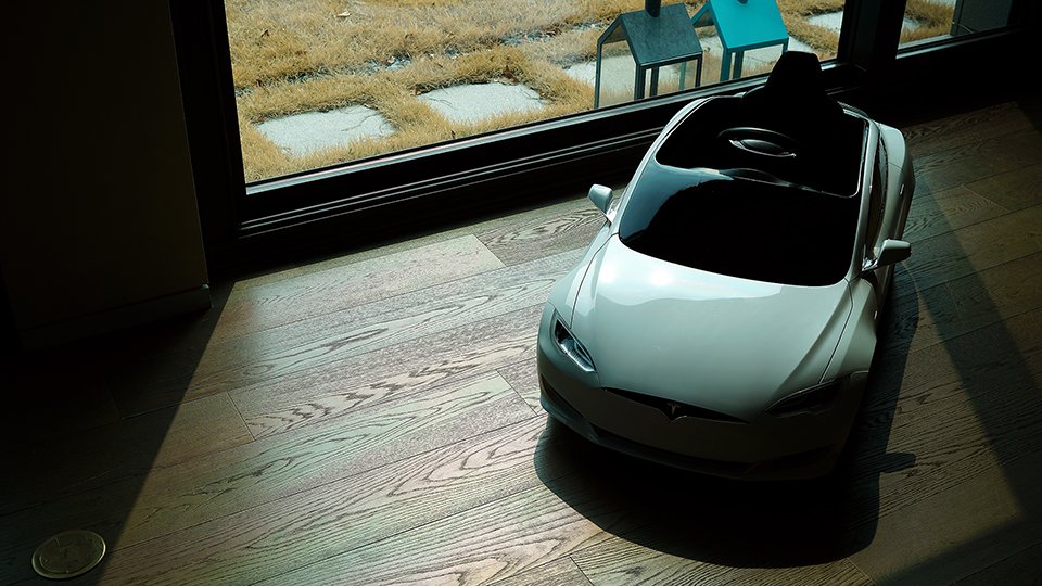원목 바닥만 아니었다면 얼핏 진짜 모델 S 느낌 같기도.