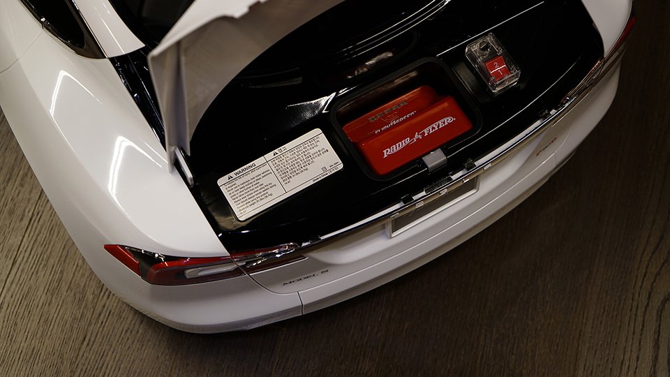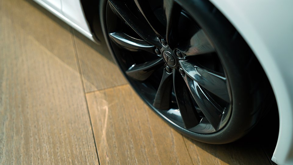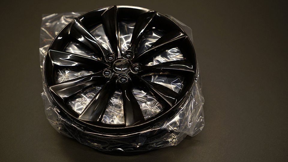 진짜 모델 S에는 옵션인 21″ 터빈(Turbine) 휠 스타일이 어린이용에는 기본 장착.