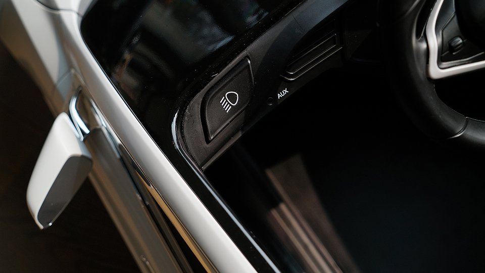 헤드라이트 ON/OFF 스위치와 AUX 입력부.