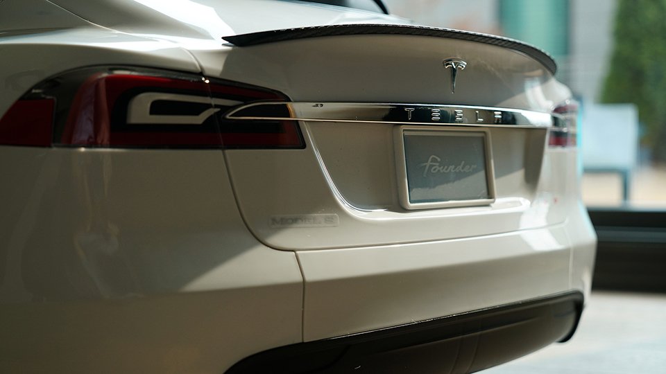 문규형이 모델 X를 사면서 받게 되는 선물이라 ‘Founder’ 플레이트가 달린 것 같다.