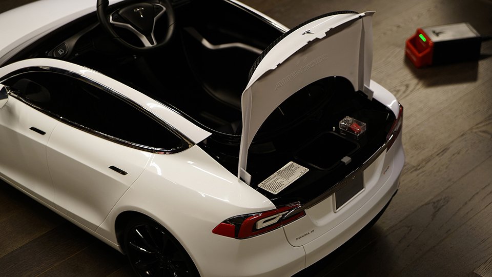 이 테슬라 S는 그냥 트렁크를 열어 배터리만 빼서 집에 들어오면 된다는 점!