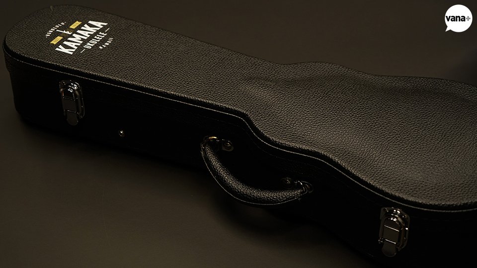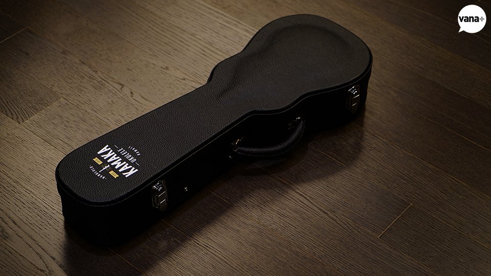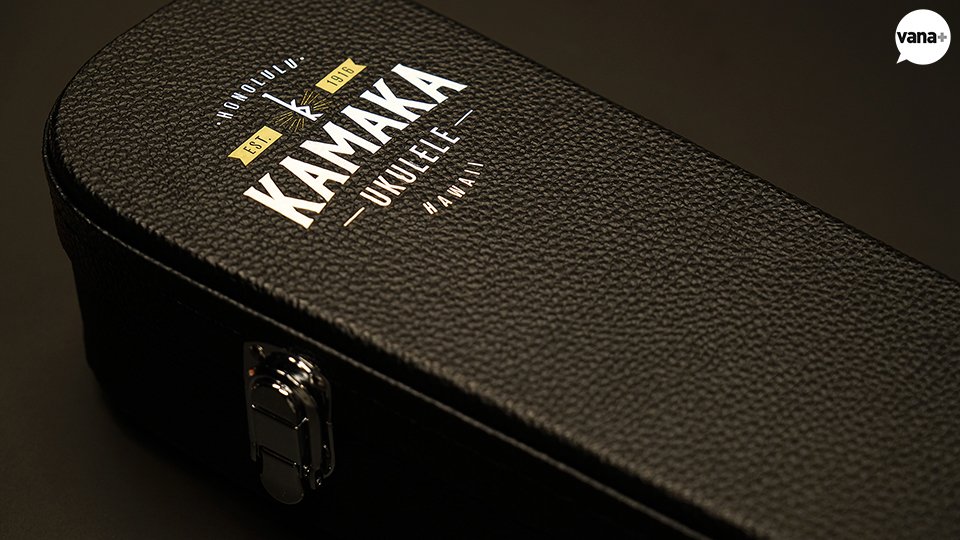 단단한 하드 케이스에 담긴 Kamaka Concert Bell Shape Deluxe (HB-2D).
