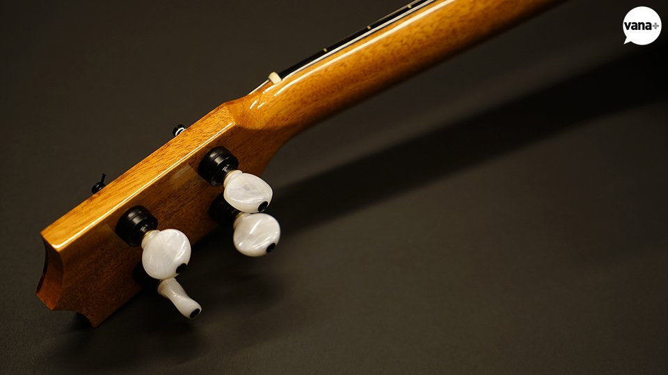 헤드스탁에 카마카 로고가 새겨져 있는데 디럭스 제품은 자개로 새겨진 로고 외곽에 Onyx로 테두리가 씌워져 있다.